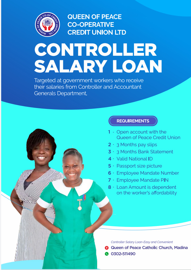 Controller loan is designed for all government workers who receive their salaries through the Controller and Accountant-General’s department. Loan repayment is deducted at the source.